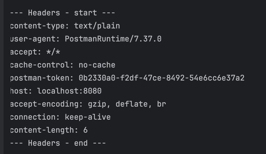.forEachRemaining(headerName -> System.out.println(headerName + ": " + request.getHeader(headerName)));