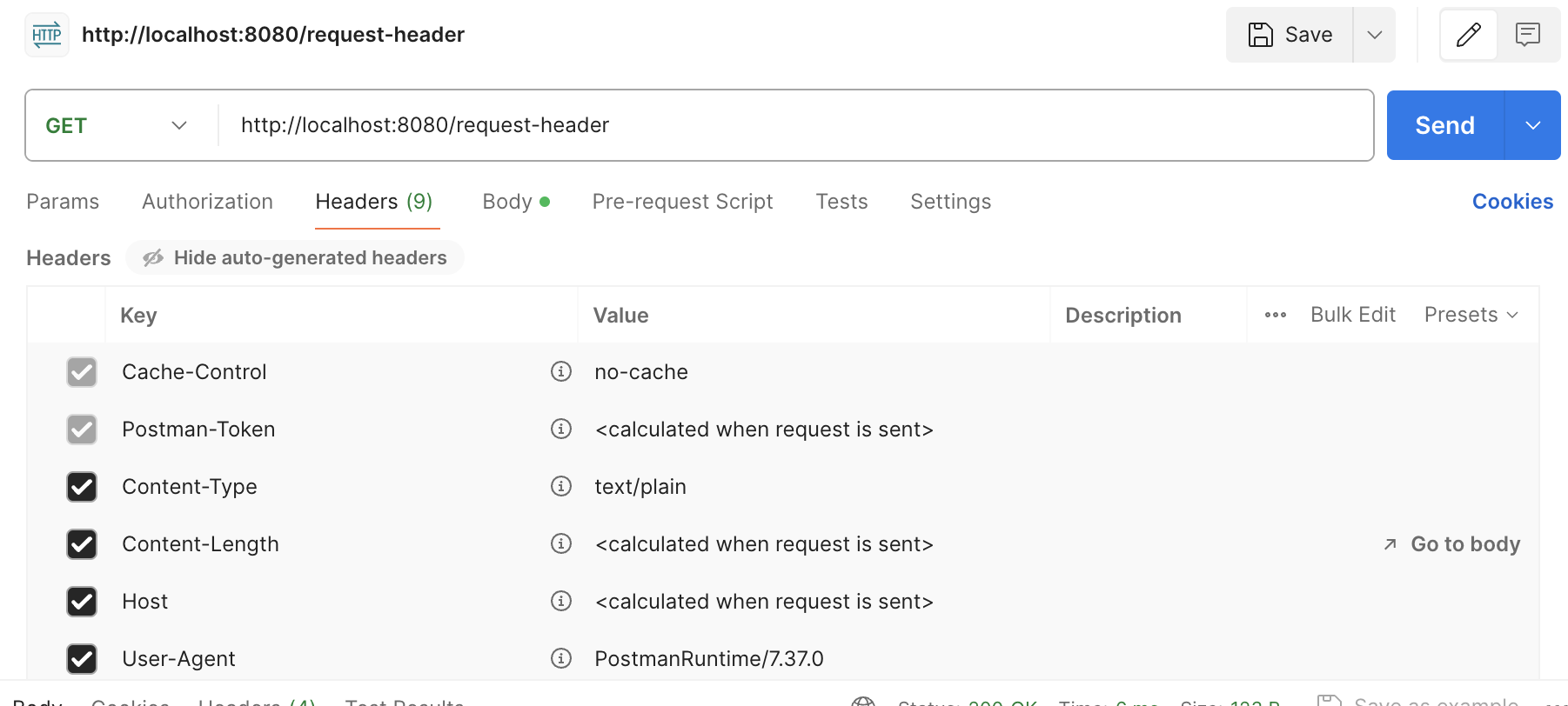 Body에서는 form 파라미터 형식을 조회, message body 데이터를 직접 조회할 수 있다.