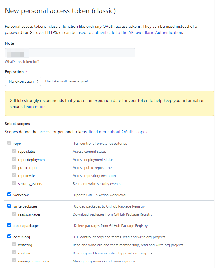 Expiration은 토큰만료기간이므로 나는 No expiration을 설정해 주었다.