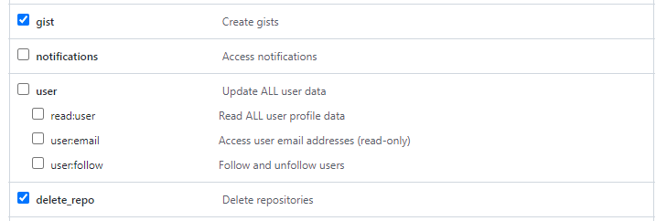 Select scopes는 허가할 권한에 체크해 주면 된다.