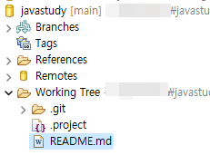 Git Repositories에 방금 생성한 javastudy (설정한 디렉토리) 폴더가 생긴 것을 볼 수 있다.