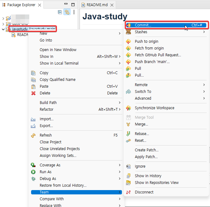 프로젝트 우클릭 ➡️ Term ➡️ Commit