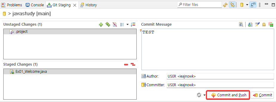 Commit Message는 꼭 써줘야 Commit and Push가 가능하니 한 줄이라도 써줄 것.
