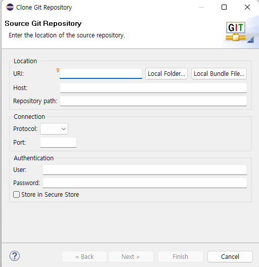 위와 같은 창이 성공적으로 떴다면 git URL을 입력해주어야 한다.