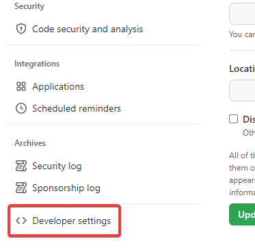 들어가면 보이는 왼쪽 메뉴 하단에 Developer settings 클릭