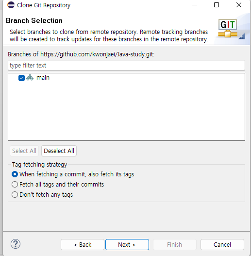 여기까지 완료되었다면 깃의 레파지토리가 이클립스에 똑같이 생성된 것을 확인할 수 있다.
