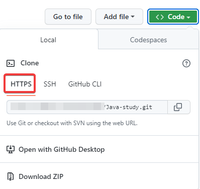 연동할 레파지토리에 들어가면 <>Code 버튼이 있고, 그 버튼을 클릭하면 git URL을 복사할 수 있다.
